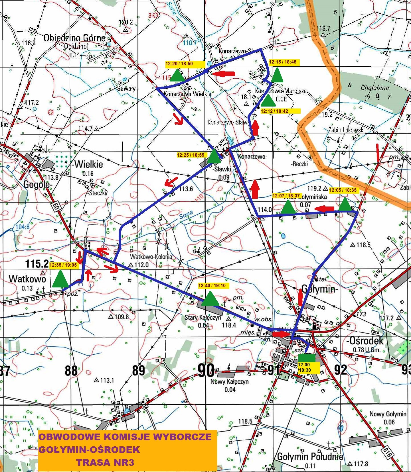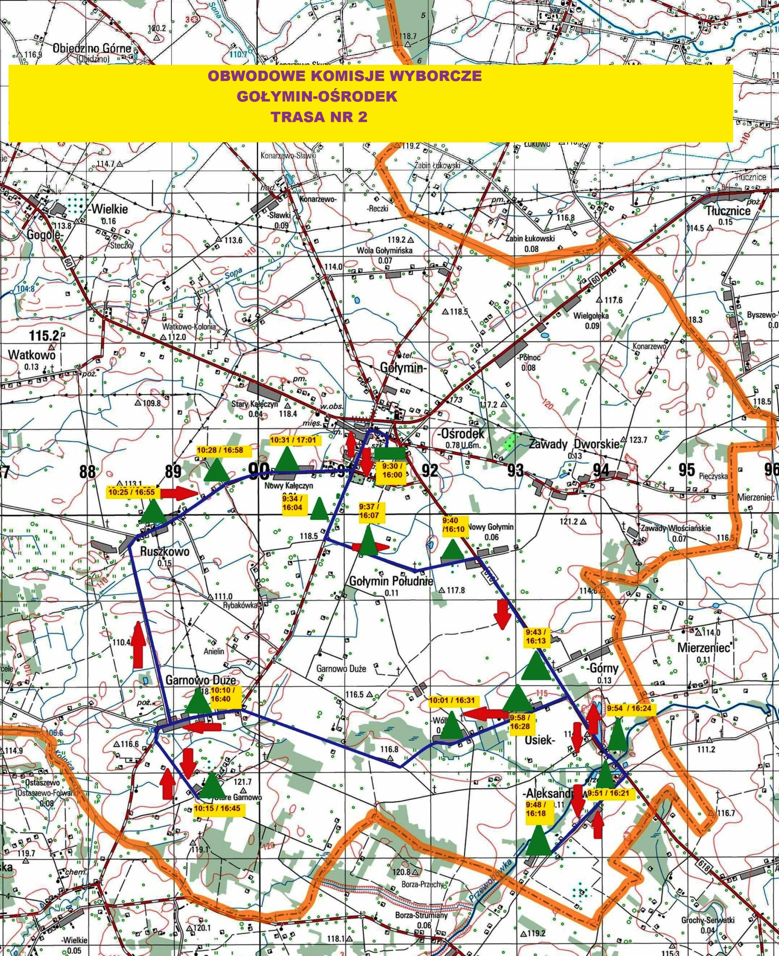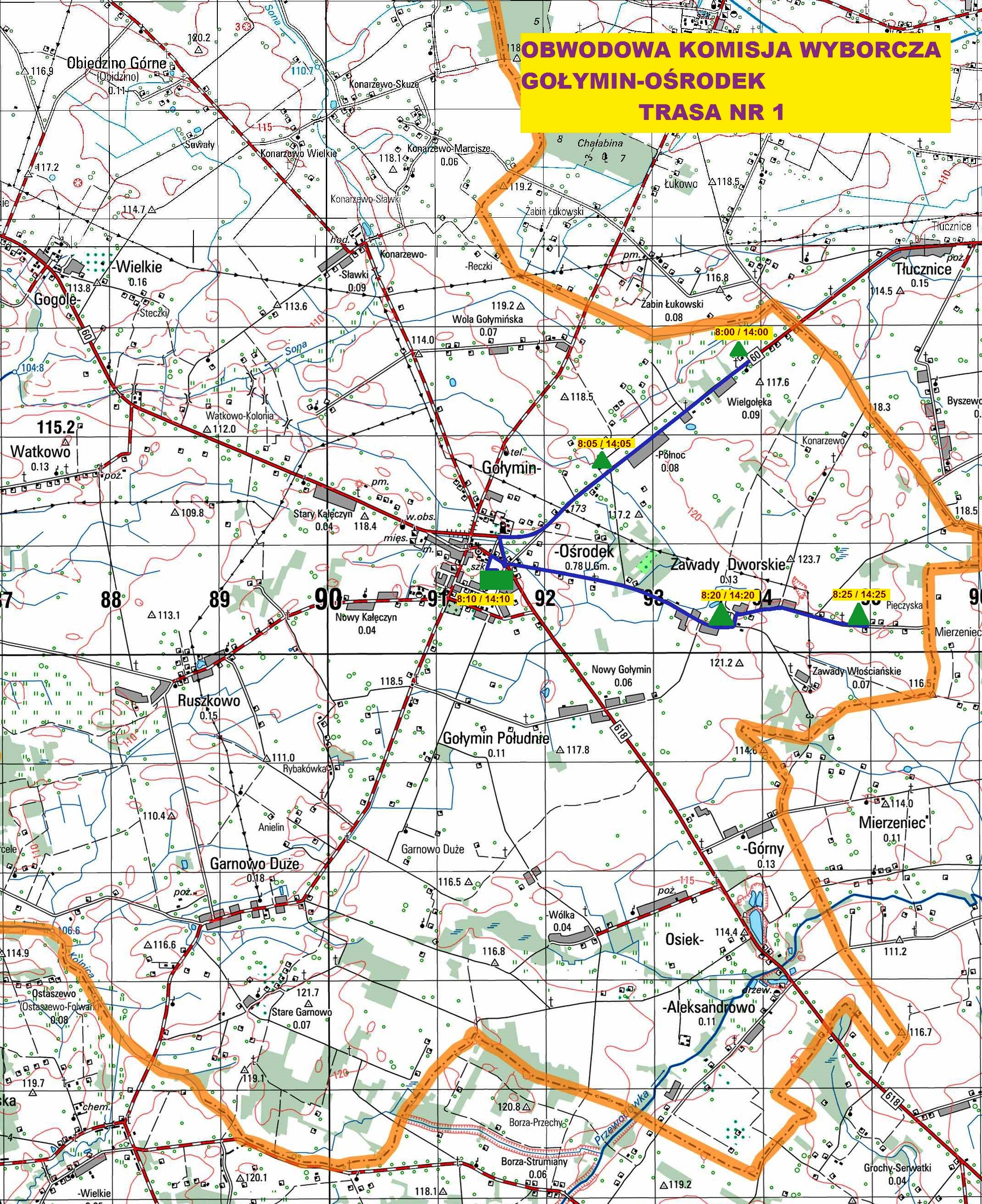 Rozkład jazdy autobusów do Obwodowej Komisji Wyborczej Nr 1 i 2 w Gołyminie-Ośrodku